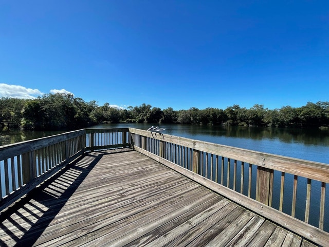 Lively scenic area with ponds, boasting a playground, trails & a dog park, plus ample parking.