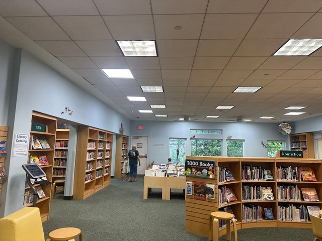 Child-friendly library sporting a butterfly garden, dinosaur exhibition and a children’s book collection.