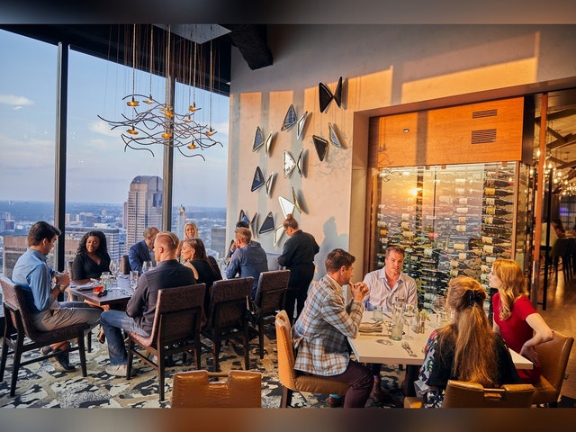 Upscale restaurant and bar, part of a large business club, known for its city views.