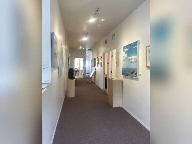 Gallery space featuring local artists and occasional live performances, plus an adjacent restaurant.