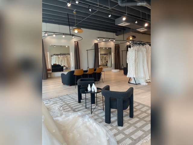 High-end bridal salon selling a range of designer wedding dresses & accessories in an elegant venue.
