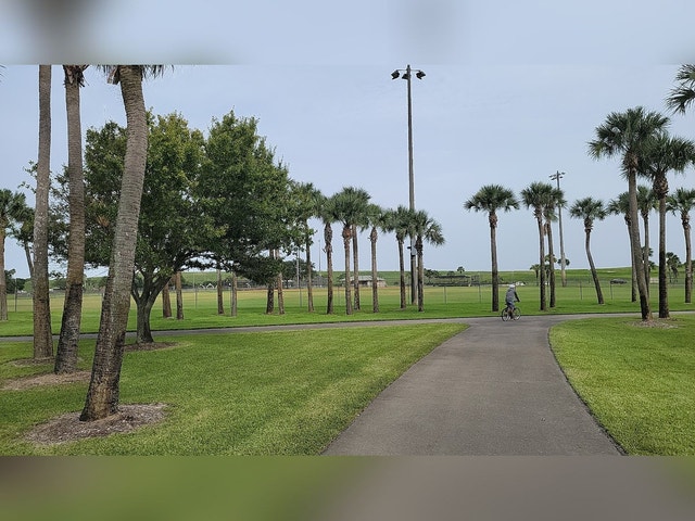 Green space with baseball & multipurpose fields, a playground, equestrian trails & bike paths.