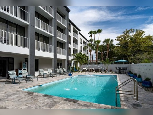 Modern 4-story hotel offering an outdoor pool, plus a business center & free WiFi.