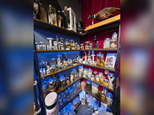 Shop featuring a range of macabre, sometimes medical, collectibles, plus stuffed pieces and bugs.