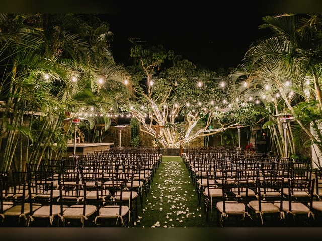 Wedding and event venue with patios and a ballroom, plus a garden for ceremonies.