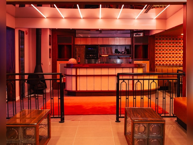 Disco, midcentury-themed bar serving cocktails, beer, wine and vinyl records.