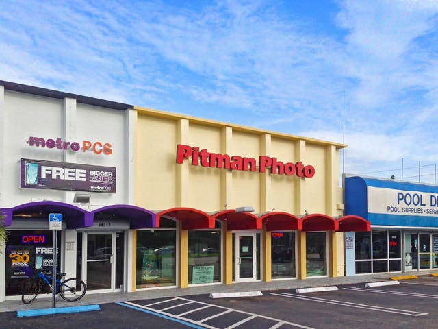 Spacious electronics superstore features cameras, photography supplies & gear, plus film processing.