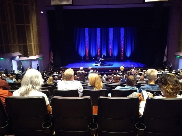 1,736-seat bayfront institution presents concerts spanning classical to jazz plus Broadway musicals.