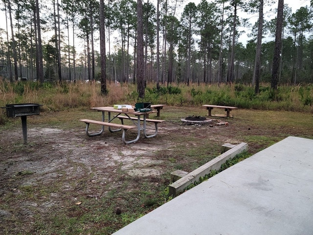 Park featuring a campground with well-spaced sites, hiking trails, and a picnic area.