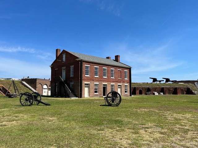Beachfront park at a circa-1864 fort with guided tours, wildlife viewing, camping & nature trails.
