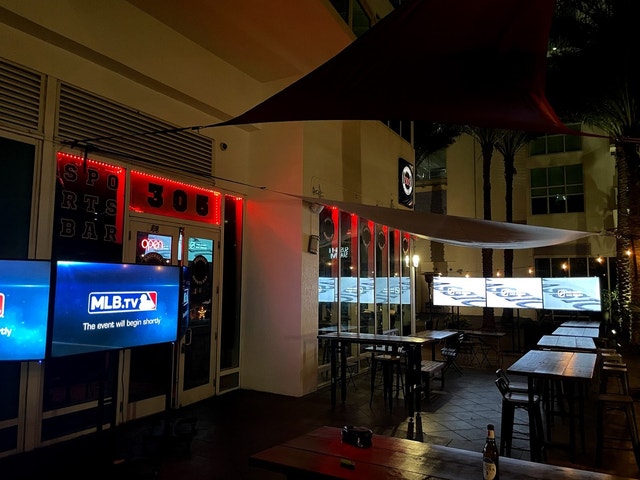 Casual sports bar with a dynamic display of images and news, plus a large beer selection, and happy hour.