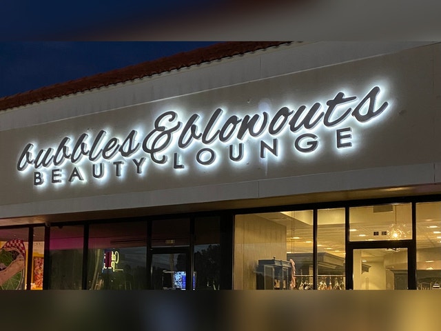 Beauty salon offering blowouts, hair styling, and makeup, plus a kids' room.