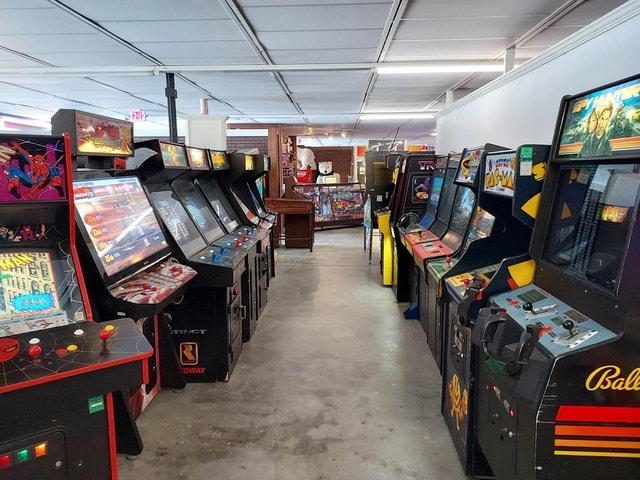 Spacious, family-friendly bar featuring vintage, modern and free-play arcade games as well as pinball machines.