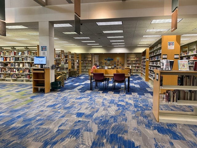 Public library with a sizable collection of books, computers, and a kids' section, plus activities.