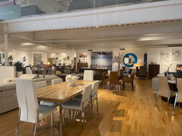 Stylish showroom offering high-end modern furniture, lighting & home decor, plus design service.