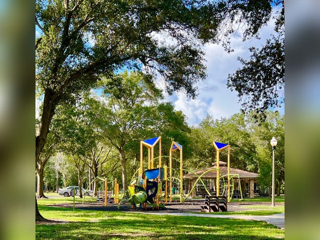 Park with picnic, play, and equestrian areas, plus facilities for baseball and volleyball.