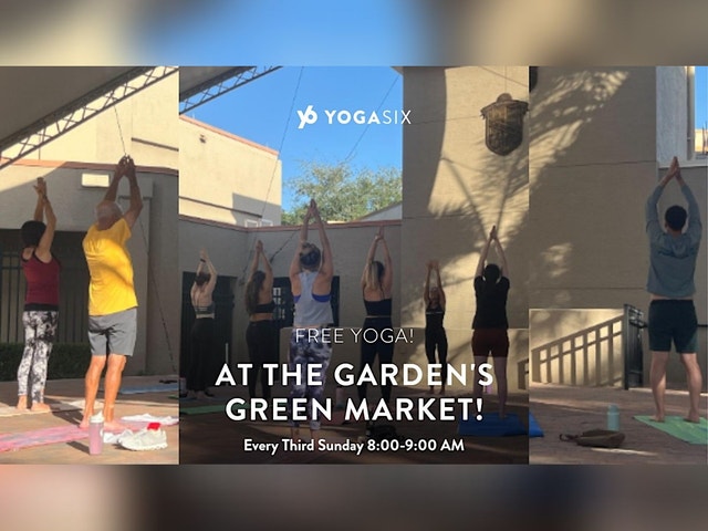 Free Community Yoga Flow at The Garden's Green Market, Led by Yogasix PBG