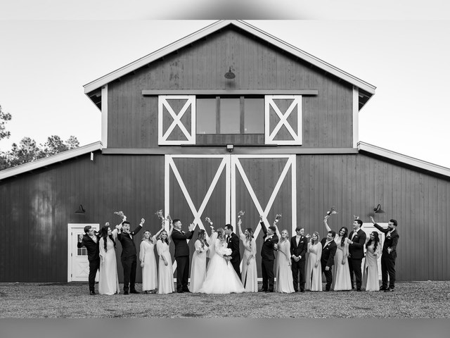 Spacious barn event venue for weddings with a lake, fire pit and manicured grounds, plus a bridal suite and g's area.