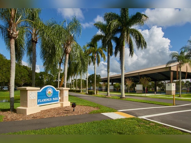 Green space offering facilities for baseball, tennis, basketball, and soccer, plus a playground and splash pad.