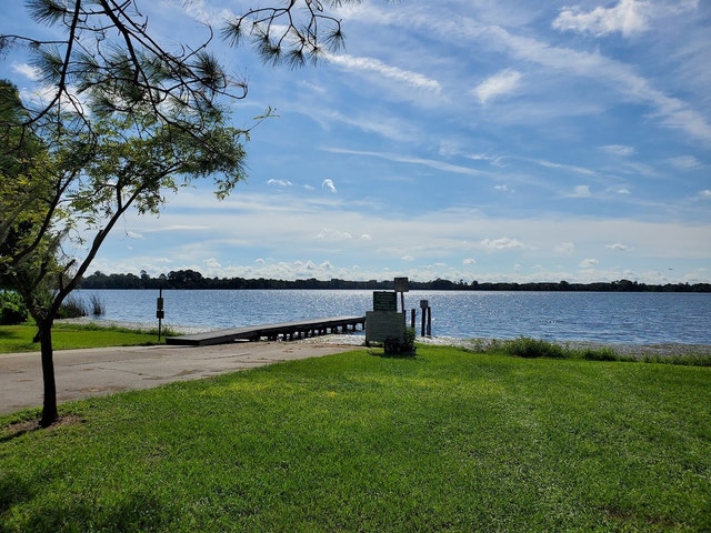 23-acre dog-friendly lakeside park offering a beach, pavilions, picnic areas & a boat ramp.