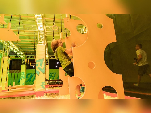 Large-scale indoor trampoline center hosting open jump, fitness classes, dodgeball & parties.