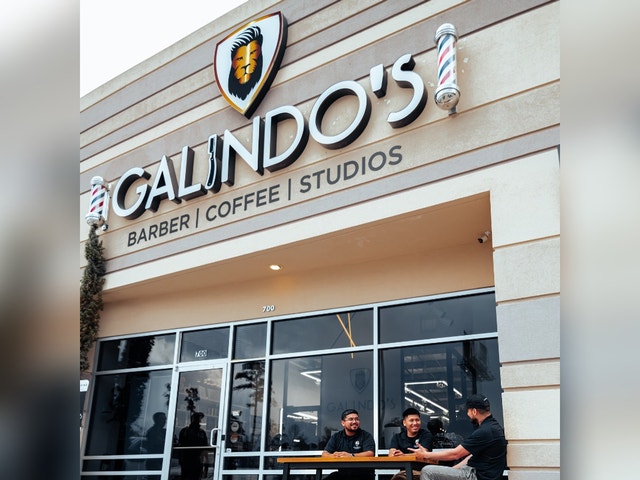 Traditional barbershop offering haircuts and shaves, plus TVs and complimentary beverages.