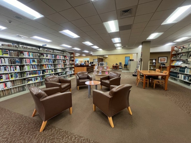 Public library featuring a range of resources, including books for adults and children, plus toys.