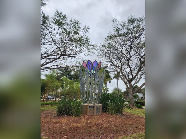Public green space featuring a nature trail, shaded tot lot, amphitheater & fitness stations.