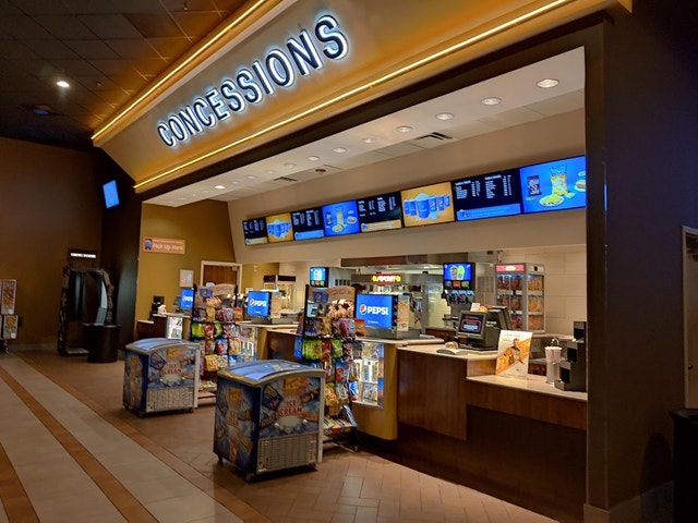 Basic theater with stadium-style seating & snack bar, showing new releases & discounted matinees.