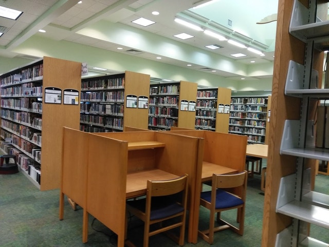Community resource offering materials for adults and kids, plus computers, printing, and study rooms.