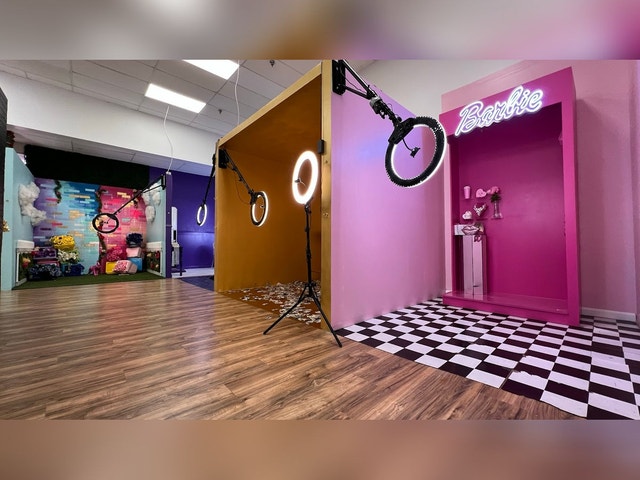 Unique, interactive space with themed rooms, props, and lighting effects for creative self-portraits.