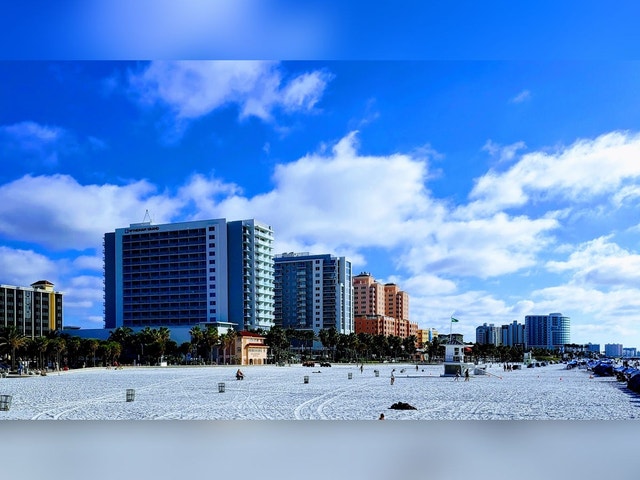 Long fishing pier offering pavilions, telescopes & a bait house with snacks, plus sunset views.