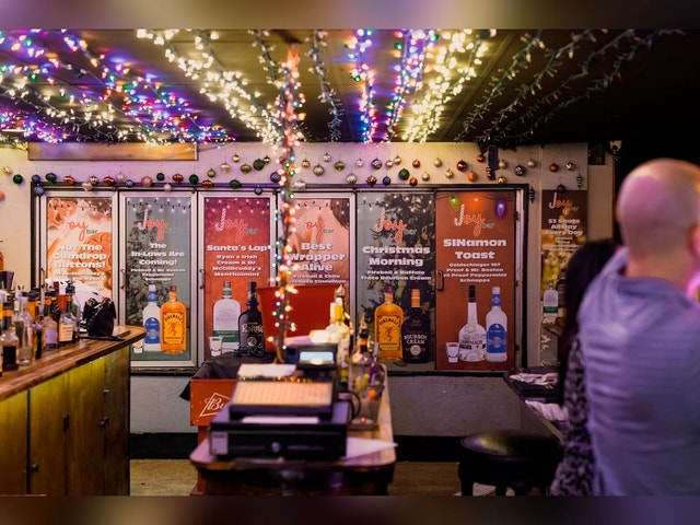 Year-round Christmas-themed cocktail bar with pool and darts, a jukebox, and signature shots.