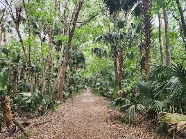 Destination for hiking on a 7-mi. trail with wildlife, including alligators, otters, and turtles, plus scenic views.