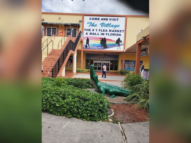 Shopping mall offering a variety of stores and services, including a driver's license office, and barbershops.