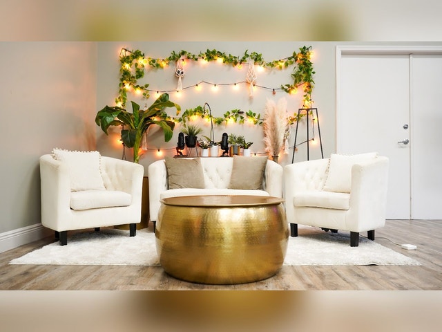 Trendy studio offering space and services for businesses and individuals to create podcasts.
