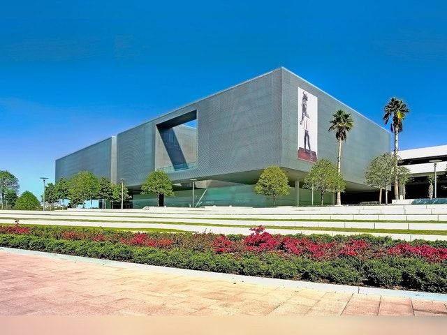 Waterfront space with translucent ceilings & polished stone floors housing modern & classical art.