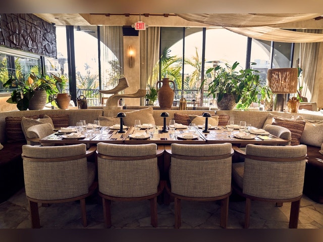 Vibrant restaurant dishing up Mediterranean staples and cocktails in a chic space with a riverfront terrace.
