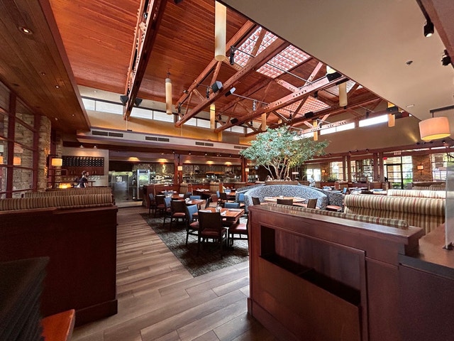 Rotating menu of seasonal American dishes alongside international wines in an upscale setting.