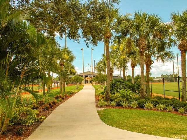City park with ball fields for league play, plus pavilions, picnic grills & a playground.