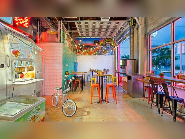 Zesty tacos & tequila drinks headline the menu at this funky joint with a food truck parked on-site.