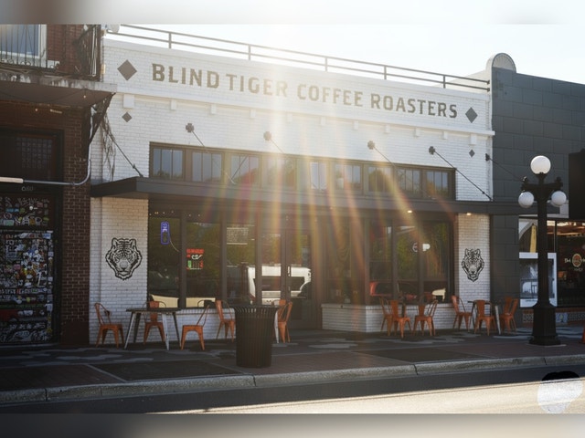 Contemporary coffee shop offering gourmet java, sweets, breakfast items, T-shirts & other textiles.