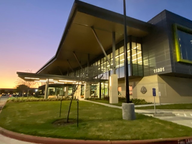 Light-filled library with meeting and study rooms, plus kids' activities.