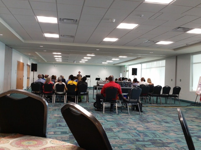 Community center hosting events, festivals, and shows, with a park and plenty of parking.