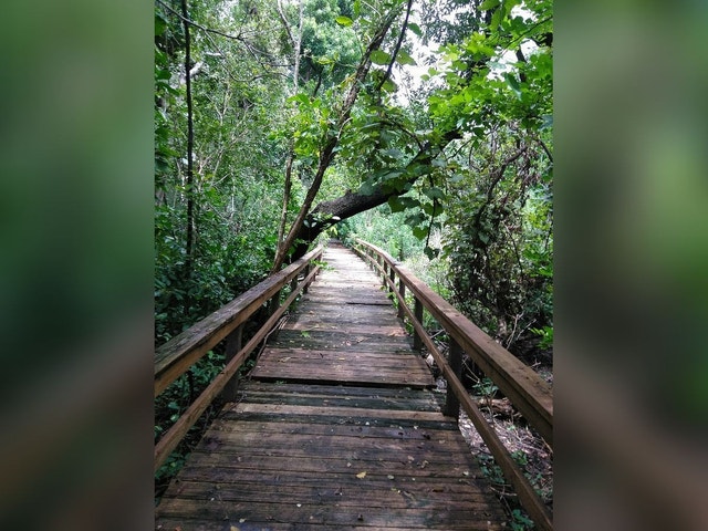 Dogs swim & play in this recreation area with picnic & sporting areas for two-legged animals too.