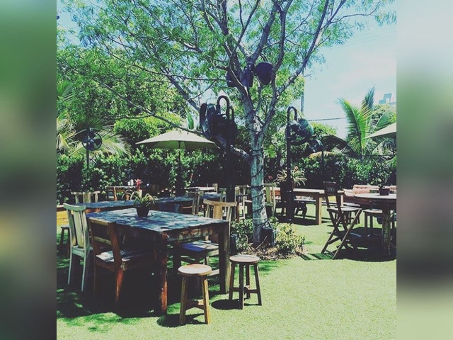 Eclectic, indoor/outdoor beer garden with rotating food trucks, a vintage Airstream bar & local DJs.