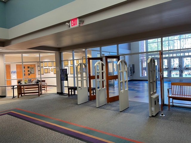 Public library offering a wide selection of books, plenty of study spaces, and picturesque views.