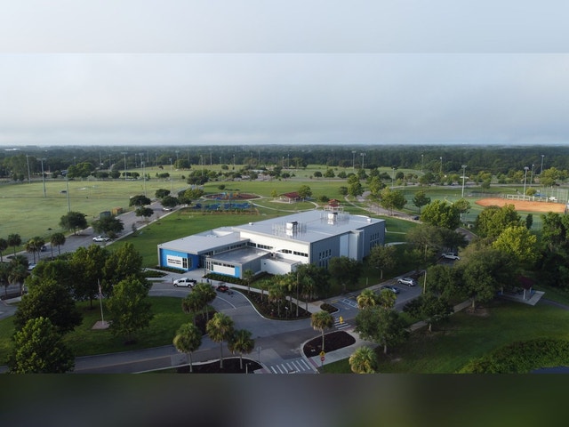 Park with a playground, tennis and basketball courts, and facilities for soccer, baseball, and softball.