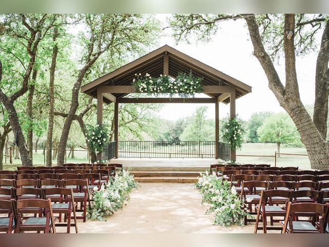 Family-run ranch venue for weddings and events, featuring a windmill ceremony spot and longhorn cattle.