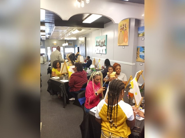 Art gallery featuring local artists' work, live performances, classes, and family activities.